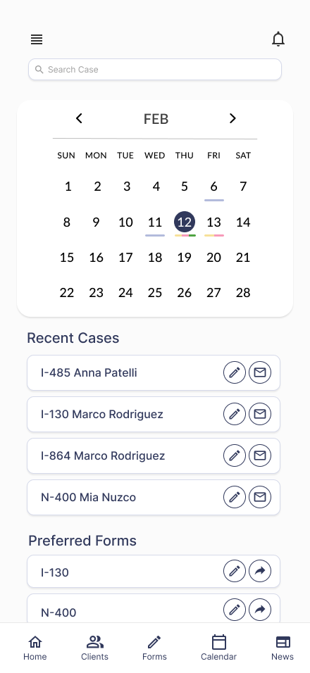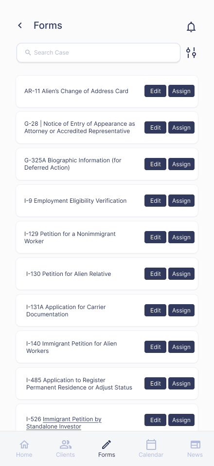 The first problem at hand was posing the questions of whether customers would find value in the mobile version of INS Zoom. A possible bigger issue would be trying to edit forms and other client data in such a small frame. Thankfully, USCIS has updated their online form submission, therefore we will be gaining inspiration from this and setting up the forms in the apps in the same way.